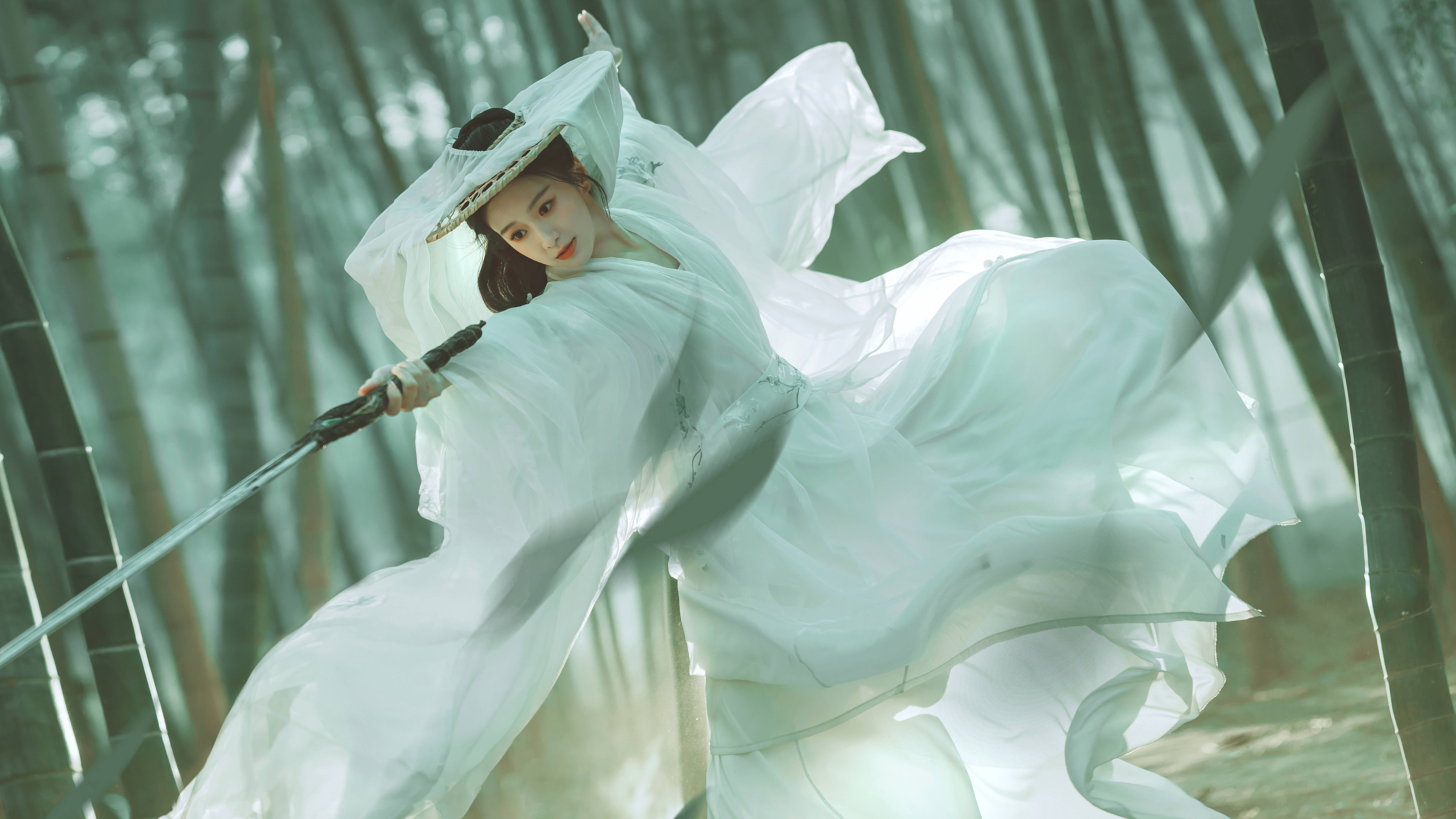 搜狐娱乐讯 2月22日,包上恩在社交平台分享一组侠女风写真,照片里的她一袭白衣,竹林舞剑,身姿翩跹。