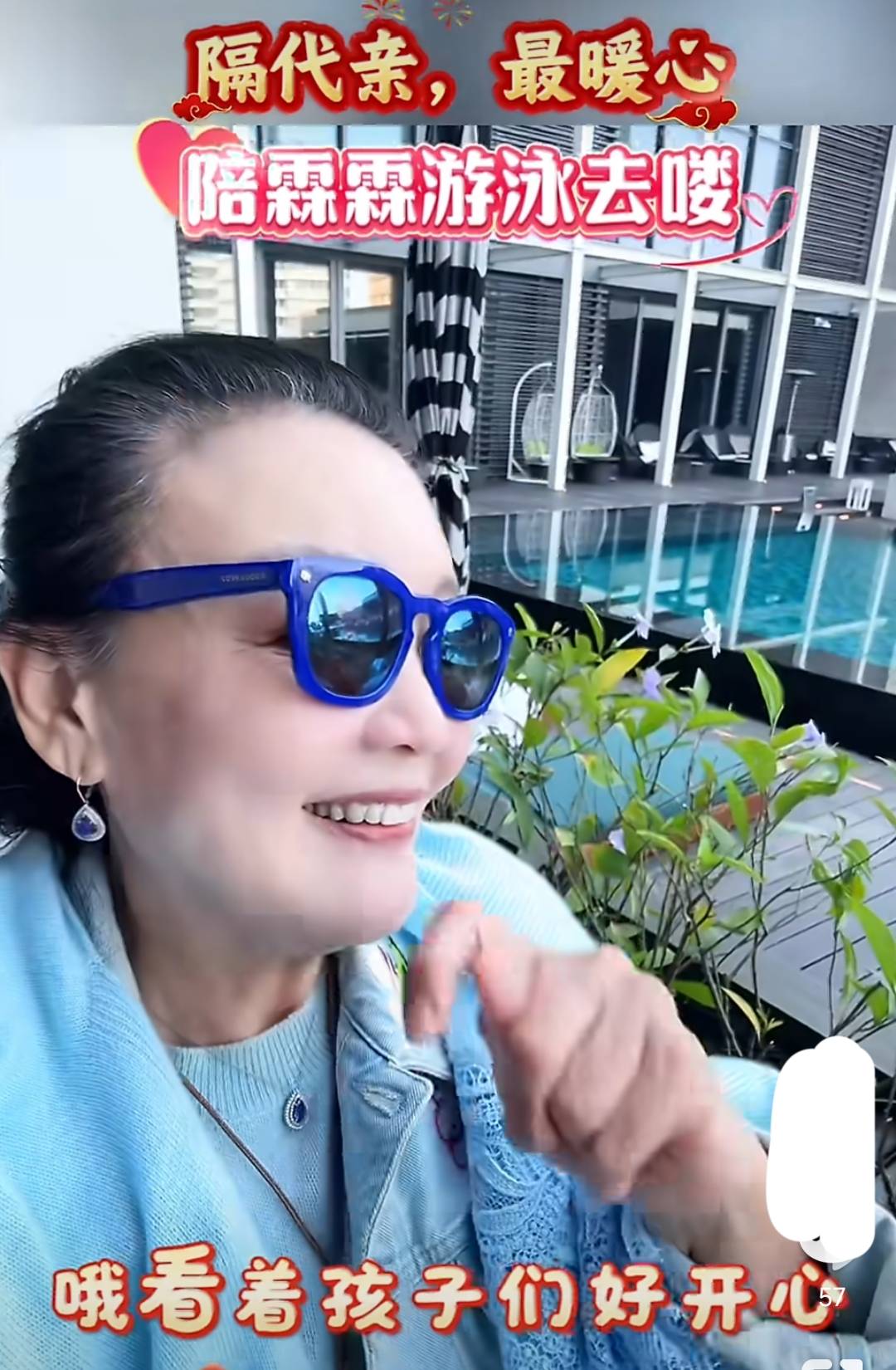 这不,马不停蹄到了台北之后,她就把孩子接到了自己住的台北酒店。泳池里,孩子们要玩欢脱了。