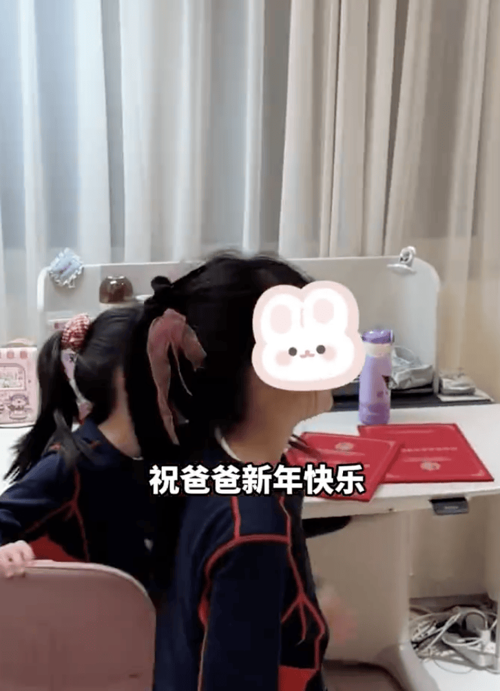 大女儿安安和小女儿咲咲一起祝爸爸陈赫新年快乐。