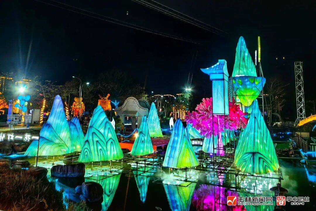 走进玉林园博园第三届新春灯会大门,几匹颜色各异的“骏马”踏在“高山”上跃入游客眼帘,紧扣农历马年主题。游客们竞相与“骏马”合影。“这里的灯会盛景,让人恍若置身仙境,太美了。”来自湖北的游客王女士说,她来玉林和儿子一起过年,看到玉林园博园晚上灯火辉煌,美不胜收,“一下子就感受到了玉林人的快乐”。
