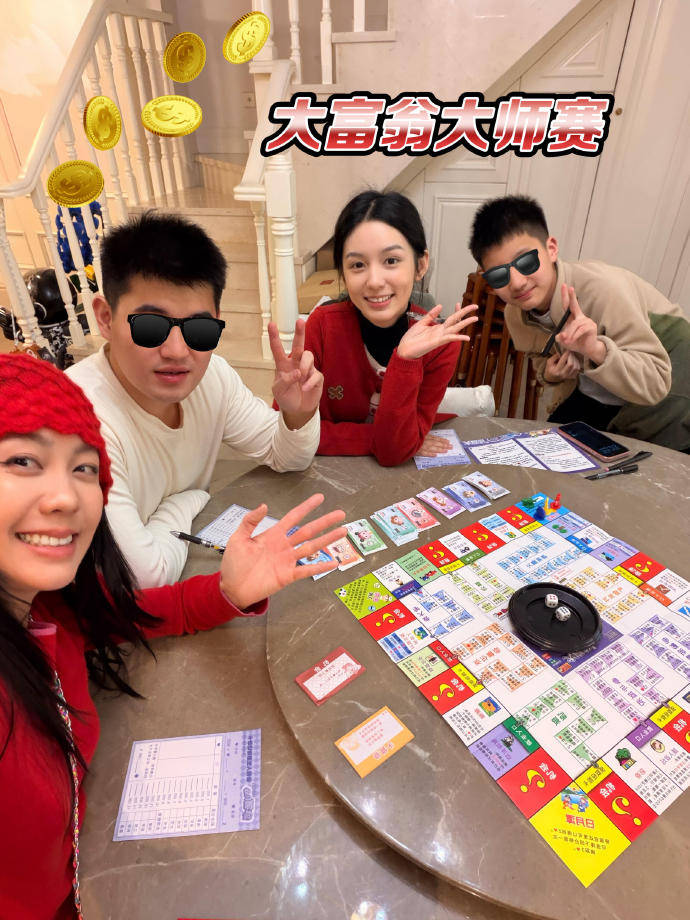 周也和家人一起玩大富翁。