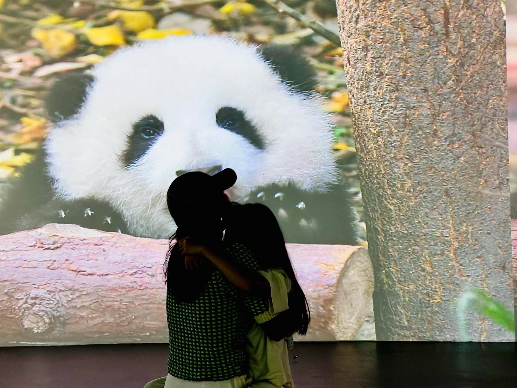 在熊猫星球馆,一家人都玩得很开心。醒醒也非常黏妈妈,虽然说已经10岁了、身高都快赶上妈妈了,但始终是个孩子。