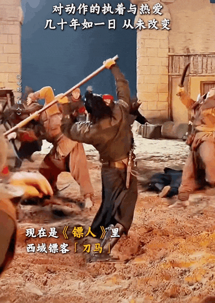 袁和平一句邀约,就义无反顾扎根新疆戈壁,实景拍摄185天,在黄沙烫脚的高温里裹着四五层戏服策马挥刀。哪怕拍摄时腰伤复发,也要把动作做到完美。