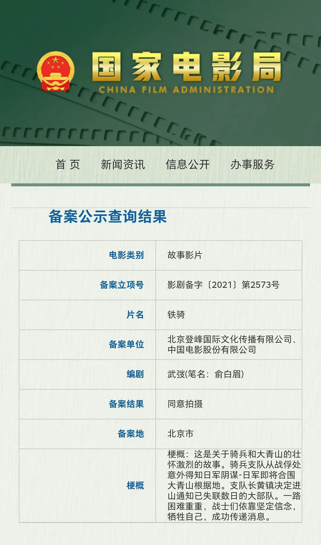 该片由俞白眉编剧、导演,吴京监制并主演,是《我和我的父辈》中《乘风》单元的延伸之作,将原本的短片故事,拓展成一部制作规格更高的大银幕作品。早在2021年,《铁骑》便已完成备案,故事聚焦抗日战争时期的骑兵支队,讲述了支队长黄镇得知日军即将合围大青山根据地的阴谋后,带领战士们穿越重重阻碍,牺牲自我、成功传递消息的壮怀故事。