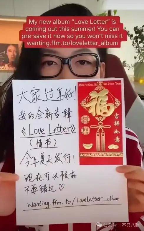 拜完年的下一句,曲婉婷就开始宣传自己的新专辑,说专辑今年夏天发行,大家现在就可以预存起来咯!