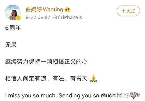 一直到2020年9月,距离曲婉婷母亲被捕已经过去6年,曲婉婷发文表达对母亲的思念,还配文:“相信人间定有道、有法、有青天。”