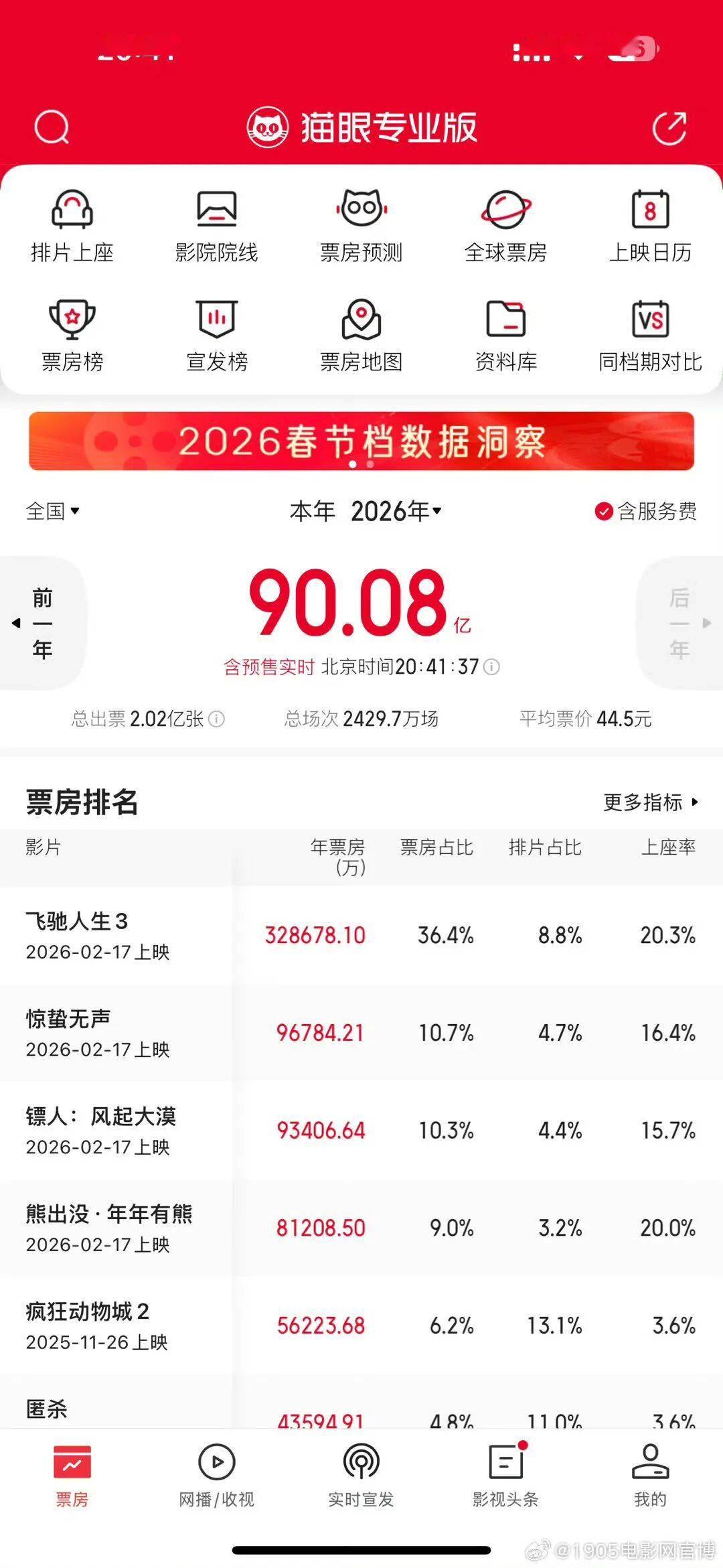 2026年中国电影总票房突破90亿