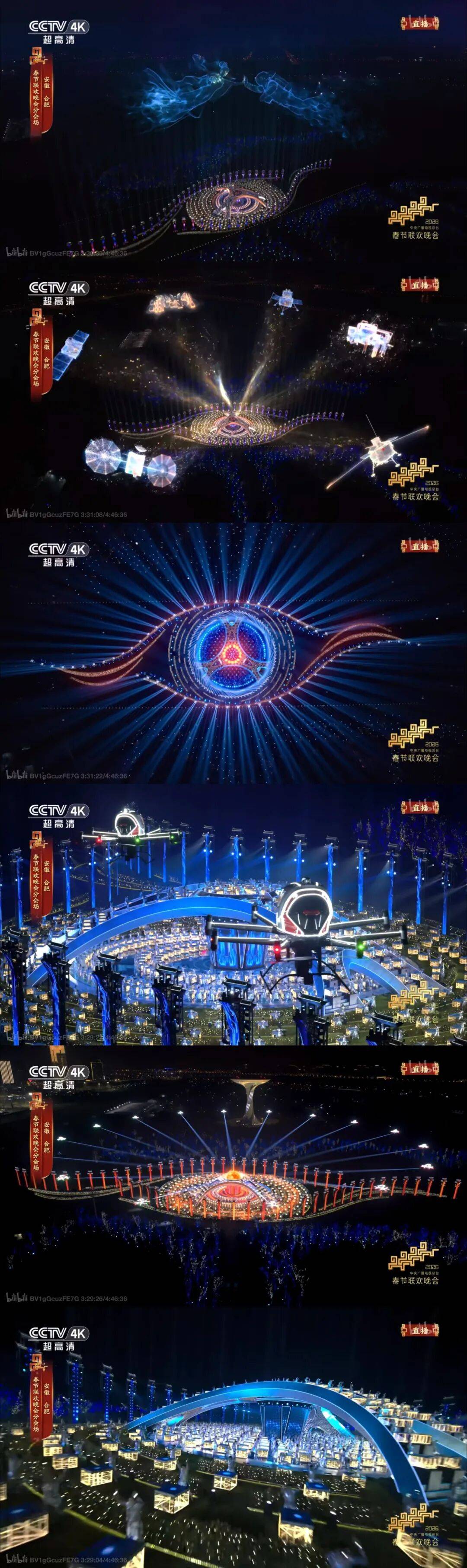 节目《合韵满江淮》将黄梅戏、水墨舞蹈、民俗年味与航空航天、人造太阳等硬核科技融为一体,无人机光影与城市地标、科创景观交相辉映,为全球观众送上江淮大地的新春祝福,也展现“中国智造”与文化传承的时代风采。