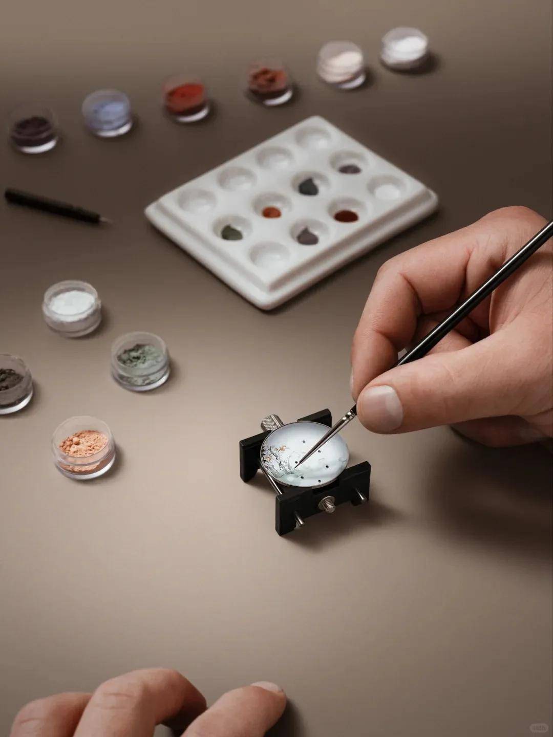 在仅2厘米见方的表背上,大师们结合微绘珐琅、大明火珐琅和玑镂雕花工艺,完美还原了水墨画的神韵。每一款都像是一幅随身携带的名画,文化底蕴拉满。