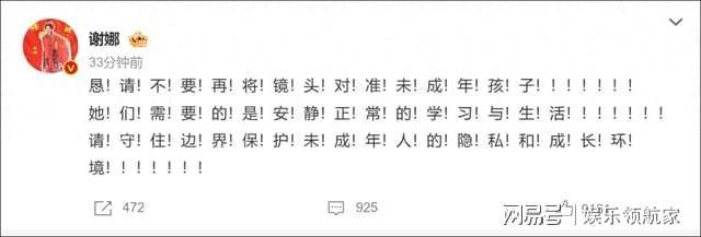 这次的突然发声,正是谢娜那份母性光辉的最强烈爆发。面对外界对未成年孩子隐私的侵犯,她毫不犹豫地站出来捍卫孩子的底线。那68个感叹号,每一个都仿佛重重敲击在那些试图窥探未成年人隐私者的心上。她不再是那个任人调侃的太阳女神,而是一位有着明确界限感、懂得为孩子成长环境保驾护航的智慧母亲。她的愤怒,不是情绪失控,而是一种理智的呐喊,是对孩子最深沉的爱与保护。她的这种爱,让她无比强大,也更加真实。 谢娜的这次发声,让我们看到了一个女性在多重角色之间自由切换与不断成长的力量。她可以是舞台上光彩照人的主持人,也可以是生活中温柔而坚定的母亲。她的每一个决定,都源自对生活的热爱与对家人的责任感。在这个流量为王的时代,谢娜用她的方式坚守内心的底线与原则。她的清醒与勇气,值得每个人的点赞。你,是否也为谢娜的这次发声鼓掌?