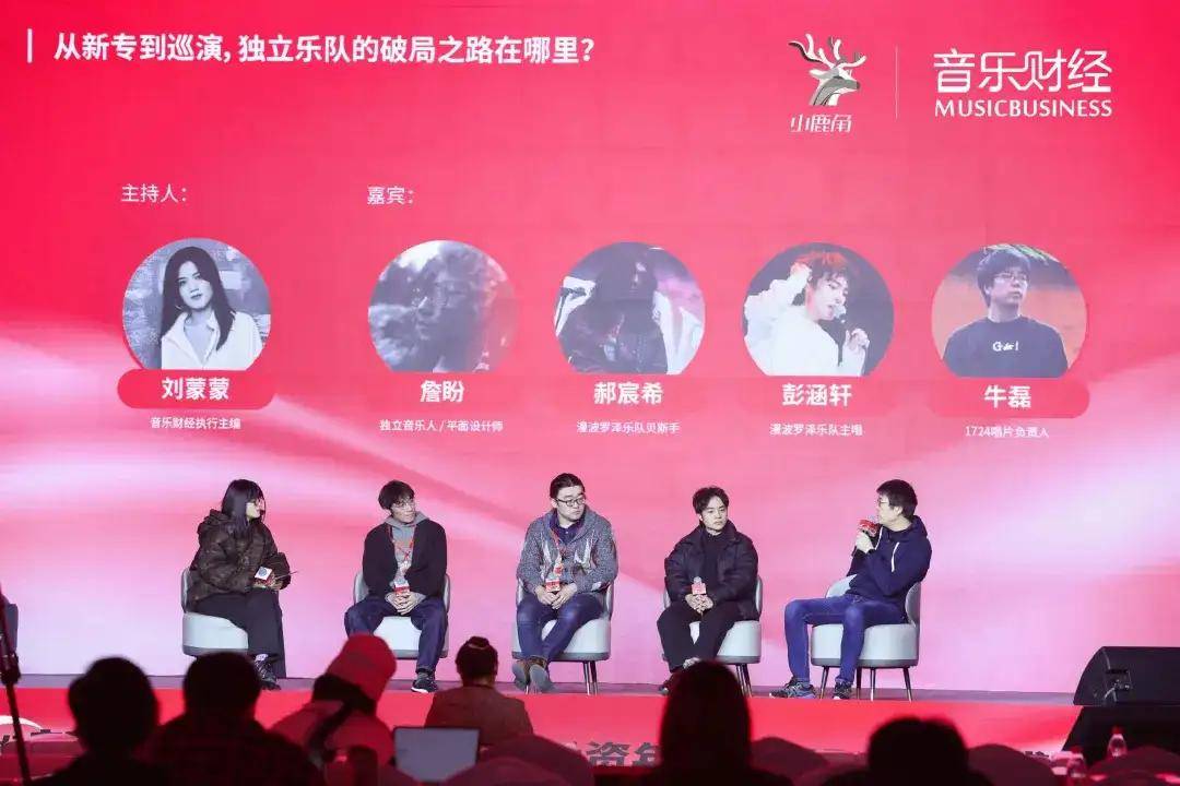 在成功举办的2025-2026音乐财经内容投资年会论坛上,独立音乐人、平面设计师詹盼,漫波罗泽乐队贝斯手郝宸希,漫波罗泽乐队主唱彭涵轩,1724唱片负责人牛磊,以及主持人音乐财经执行主编刘蒙蒙,就“从新专到巡演,独立乐队的破局之路在哪里?”这一议题展开了深度对话。