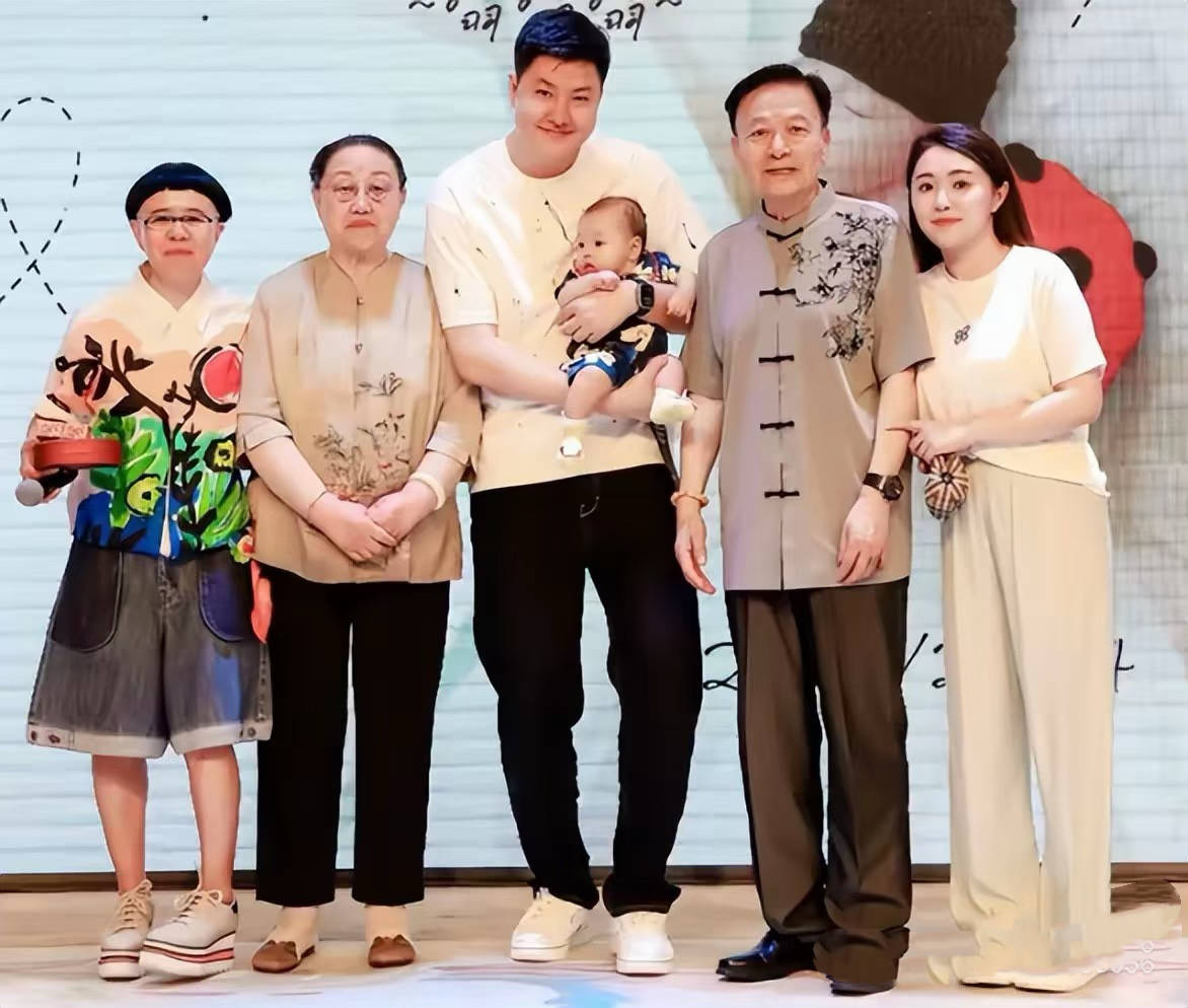 金宝刚出生时候,一家人也聚在一起拍照留念。刘青林的大高个很优越,看着比岳父王宁还要高一截。