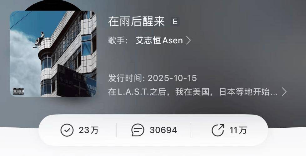 甚至,如今《在雨后醒来》已经有23万收藏量,超越王以太的《演.说.家》成为中文说唱历史上收藏量最多的专辑。