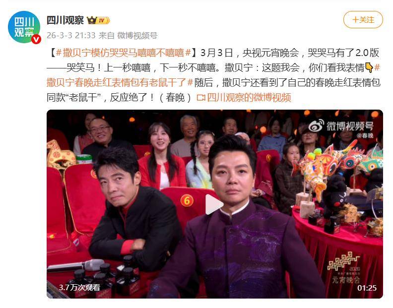 3月3日,央视元宵晚会现场,撒贝宁遭遇了一场来自节目组的“精准背刺”。当自己春晚同款的“老鼠干”表情包被做成实体道具突然亮出时,他贡献了堪称年度经典的“捂耳僵立+瞳孔地震”反应,喜剧效果直接拉满,瞬间引爆网络。