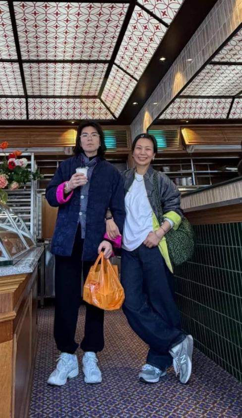 萧敬腾继续喝着他的咖啡,另一只手帮老婆拎着买的甜品,与老婆并肩而站的他,无论是穿搭上的色彩呼应,还是神态上的亲密互动,都传递出一种幸福和谐的感觉。