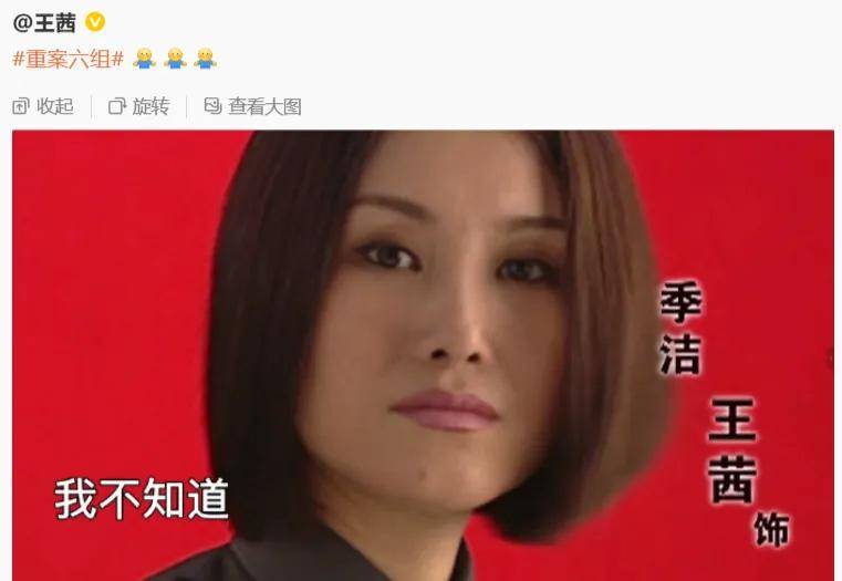 只见王茜带着“重案六组”话题发文,配上三个摊手表情,配图都是“我不知道、我也不知道、我还是不知道、我真的不知道”。