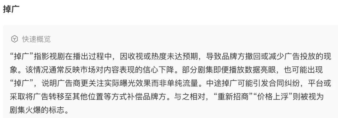 但正如前面所说,诸如《唐宫奇案》播映后期掉落到单集1广、《生命树》也因热度不及预期从单集6广掉到过2广等现象,都警示了行业大剧前置招商也会受真实播映热度影响最终波动到广告数量。