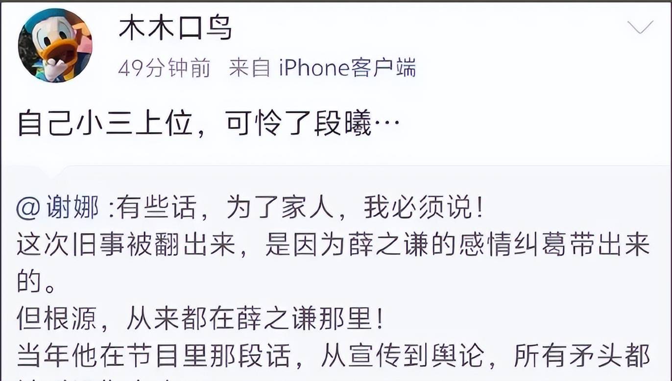 薛之谦的朋友先是发文暗示谢娜是第三者上位,称“可怜了段曦”。这个名字大家或许并不熟悉,但刚刚,段曦发了一篇长文,讲述了当年自己跟张杰分手的过程。