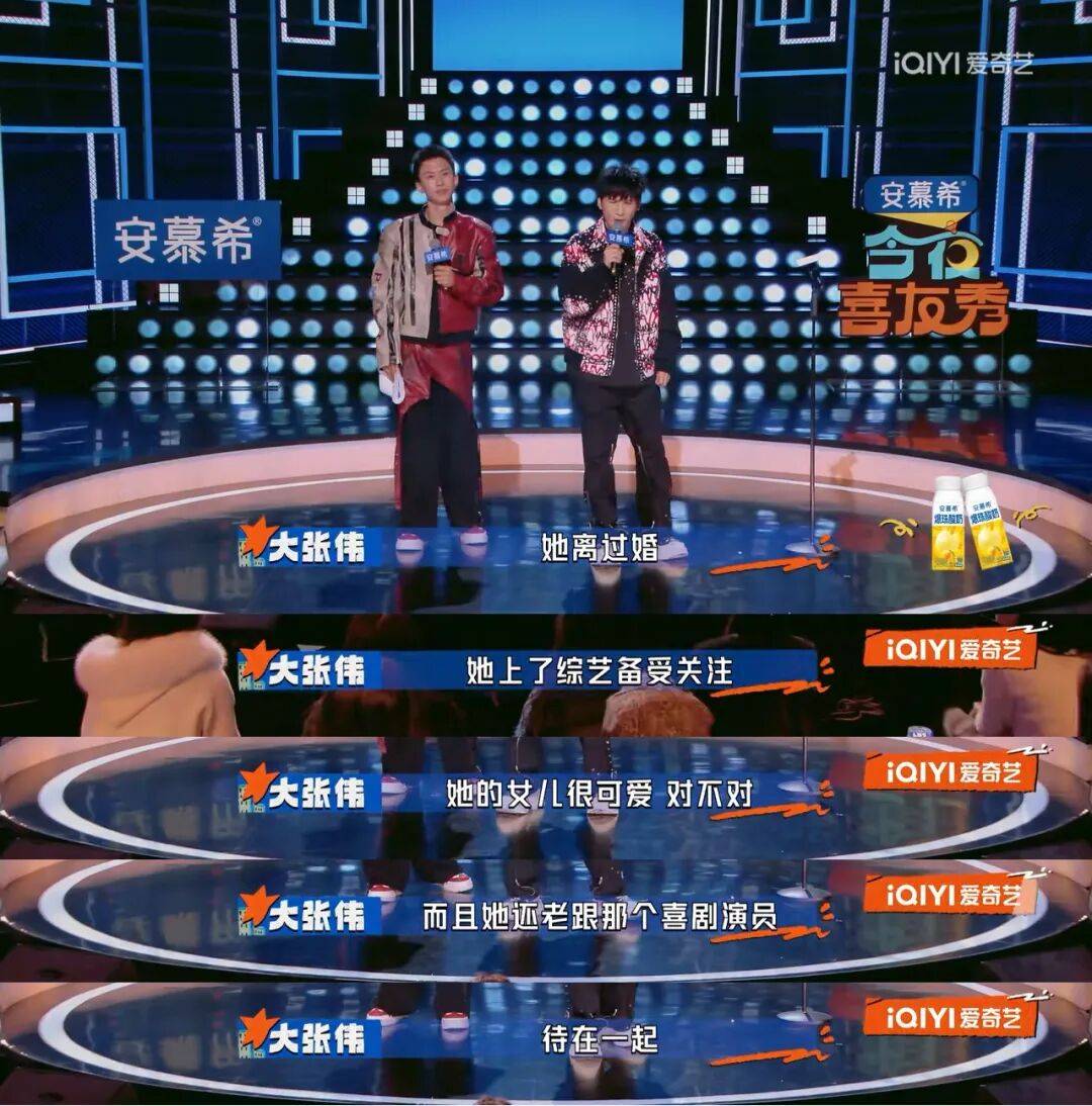 她上台之前,大张伟是这样介绍的:离过婚、上综艺备受关注、有个可爱的女儿、老和喜剧演员待在一起。就在全场高呼董璇的名字时,房主任登场了。(谁能想到呢,五十岁的农村妇女房主任和大明星董璇拿的竟然是同一个剧本...