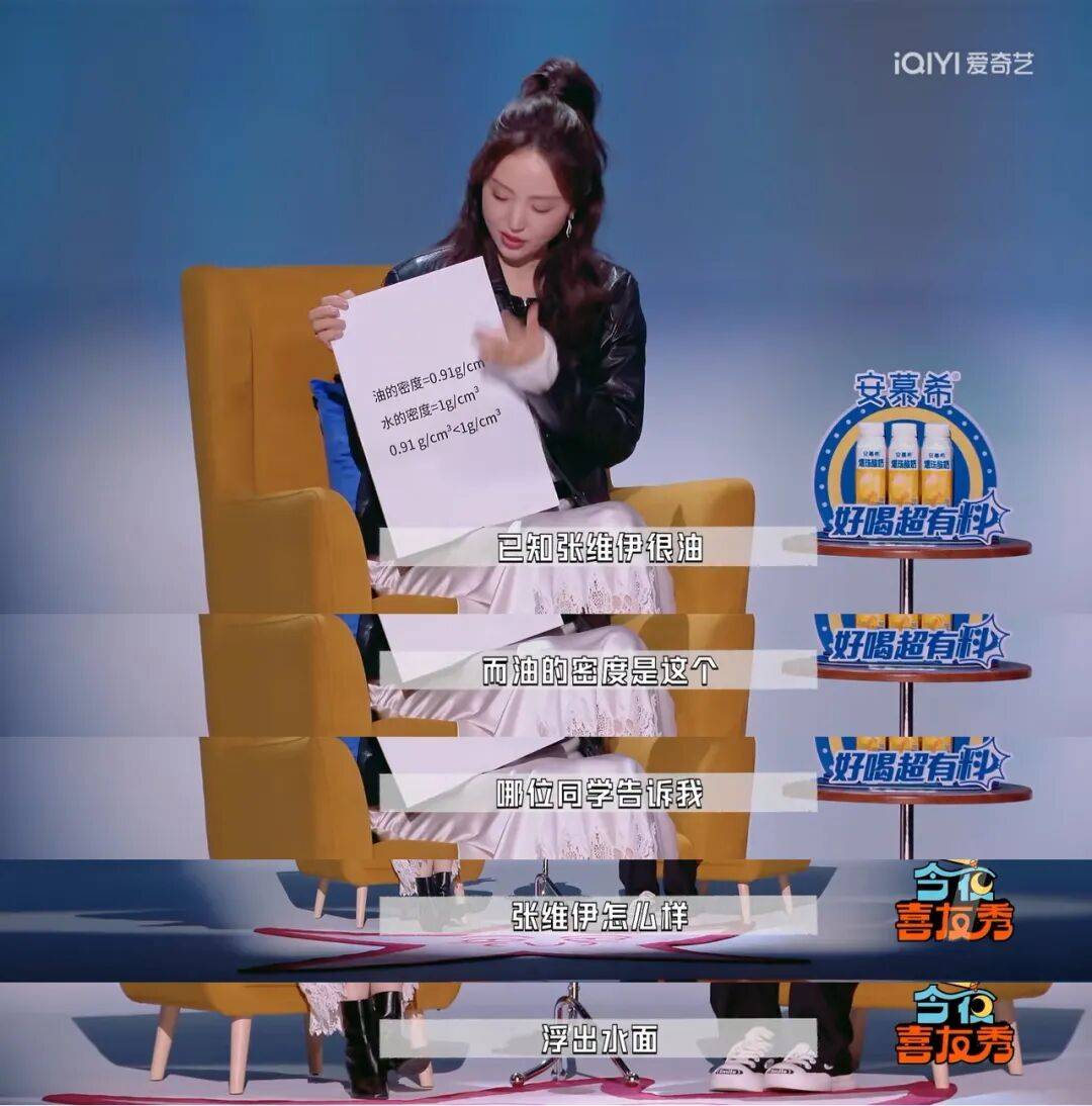 小北追问如果佟丽娅和张维伊同时掉水里,她会救谁,董璇表示:“已知张维伊很油,而油的密度是这个,哪位同学告诉我,张维伊怎么样?浮出水面!”笑死,这波操作,还真是深谙物理和端水两门学问呢!