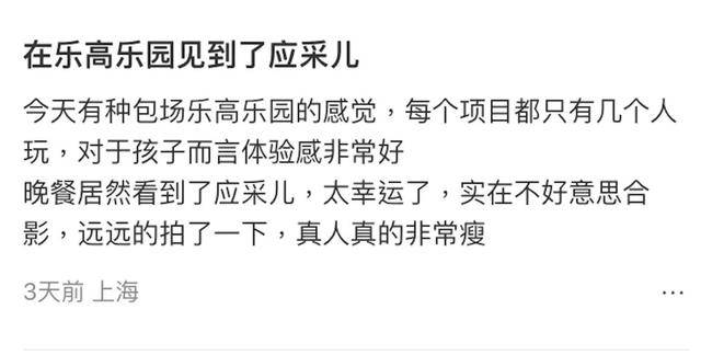 除了吸睛的外形,这次偶遇更让大众将焦点放在了她教子态度上。有另一位曾在餐厅偶遇过应采儿的网民在评论区跟帖爆料了一段细节。该网民回忆,前年带孩子吃饭时恰好坐在应采儿隔壁桌。