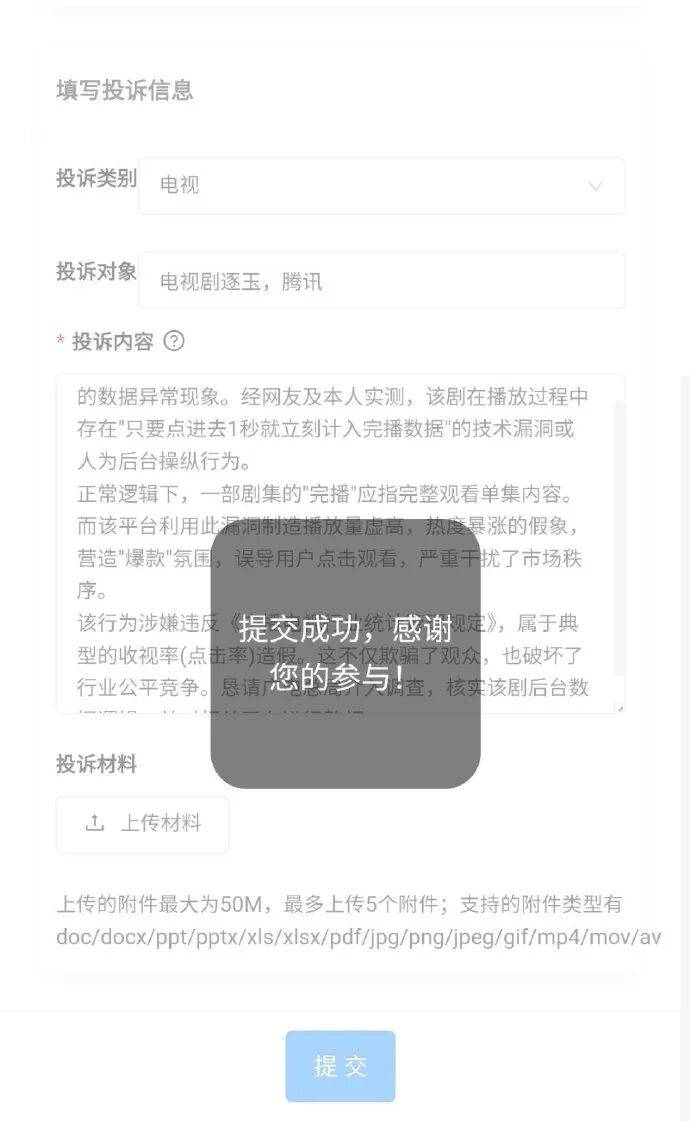 网友举报获深圳12315受理,需提交书面材料;广电总局尚未回应。倘若证实平台数据造假,腾讯可能面临证监会调查。
