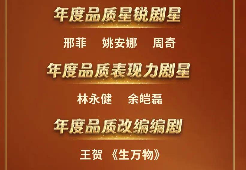还有男主欧豪、男配林永健以及《生万物》编剧、制作人都有奖可拿,整个剧组也有剧集奖。
