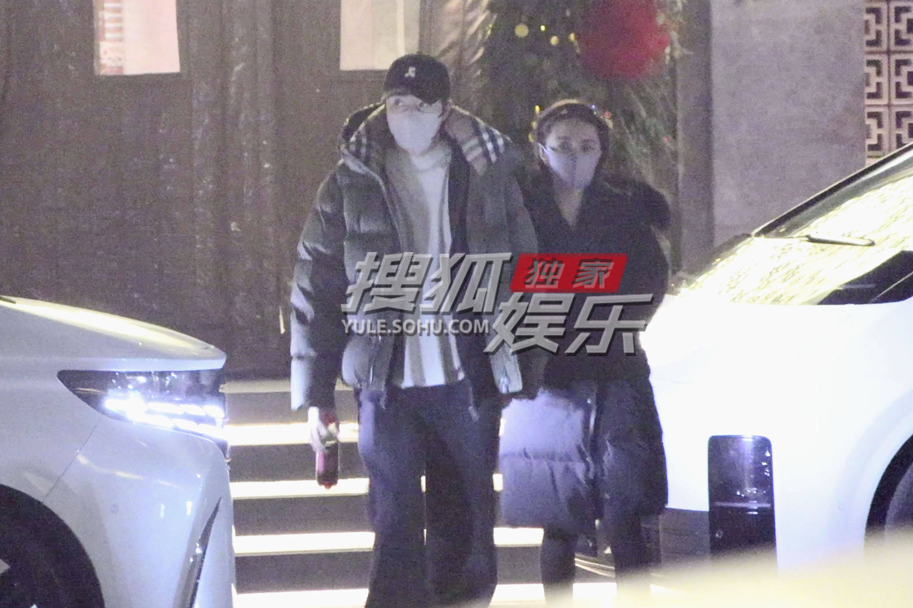 俞灏明与王晓晨饭后甜蜜牵手而出。