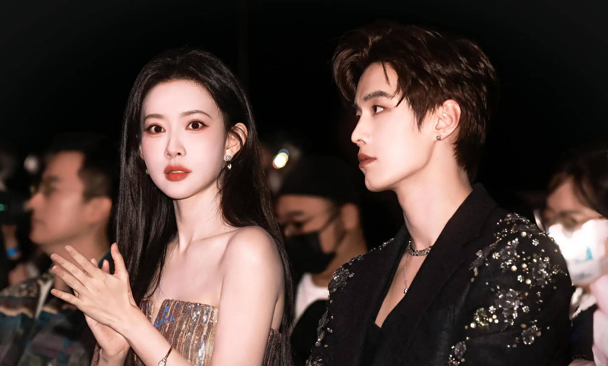 搜狐娱乐讯 近日,孟子义与何与同框出席活动。孟子义着鎏金抹胸裙,何与穿亮片黑西装,同框般配养眼。