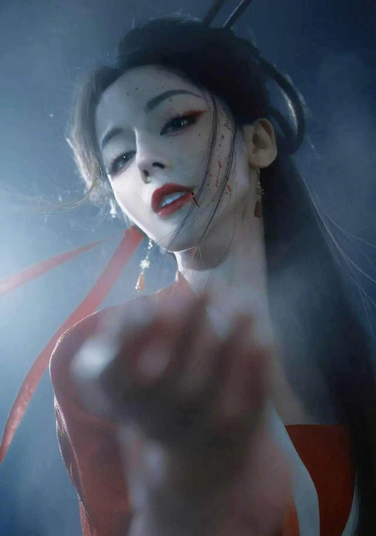 搜狐娱乐讯 近日,迪丽热巴一组古风红衣大片曝光。她着红纱汉服,带血痕妆容,尽显凄艳鬼魅的破碎美感。