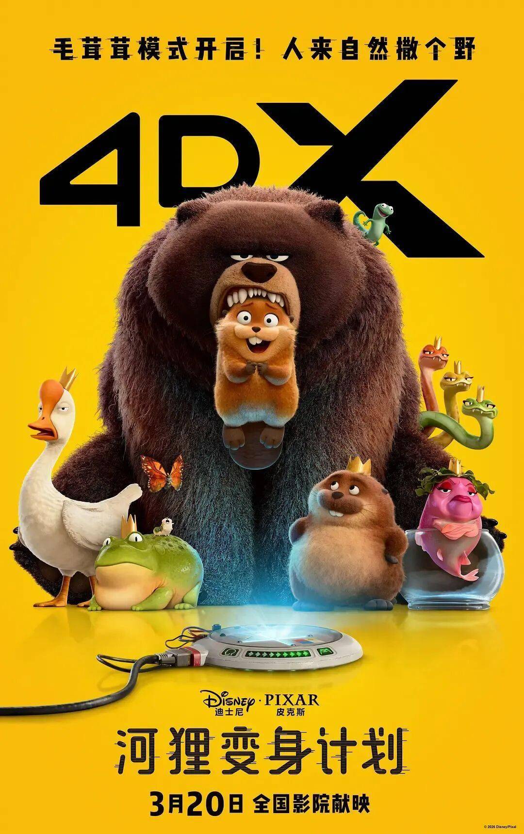 由丹尼尔·钟执导,丹尼尔·钟、杰西·安德鲁斯编剧,佩珀·柯达、乔恩·哈姆等配音,皮克斯原创动画长片,《河狸变身计划》。
