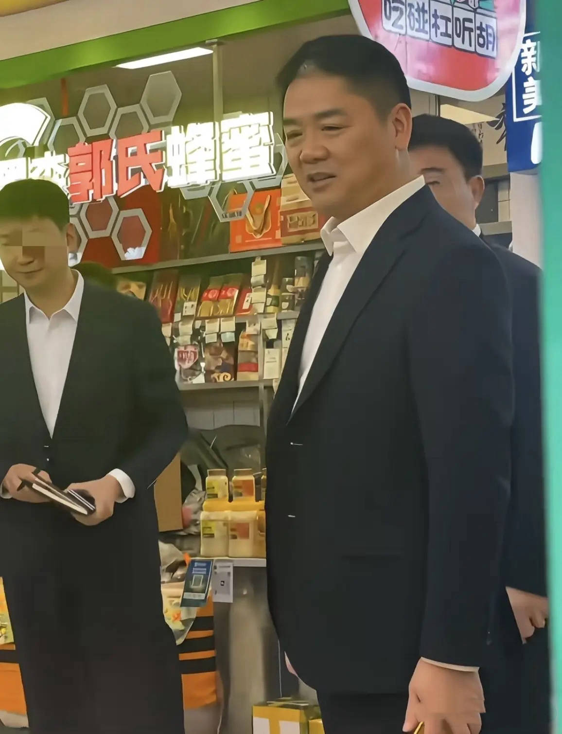 近日刘强东带团队逛哈尔滨菜市场,他穿一身黑色西服套装,身板挺拔。在身后跟着五六名工作人员,看着很有派头。