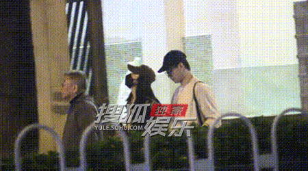 饭后,姚晨和一位年轻男士并肩而出,同行的还有一位长者。