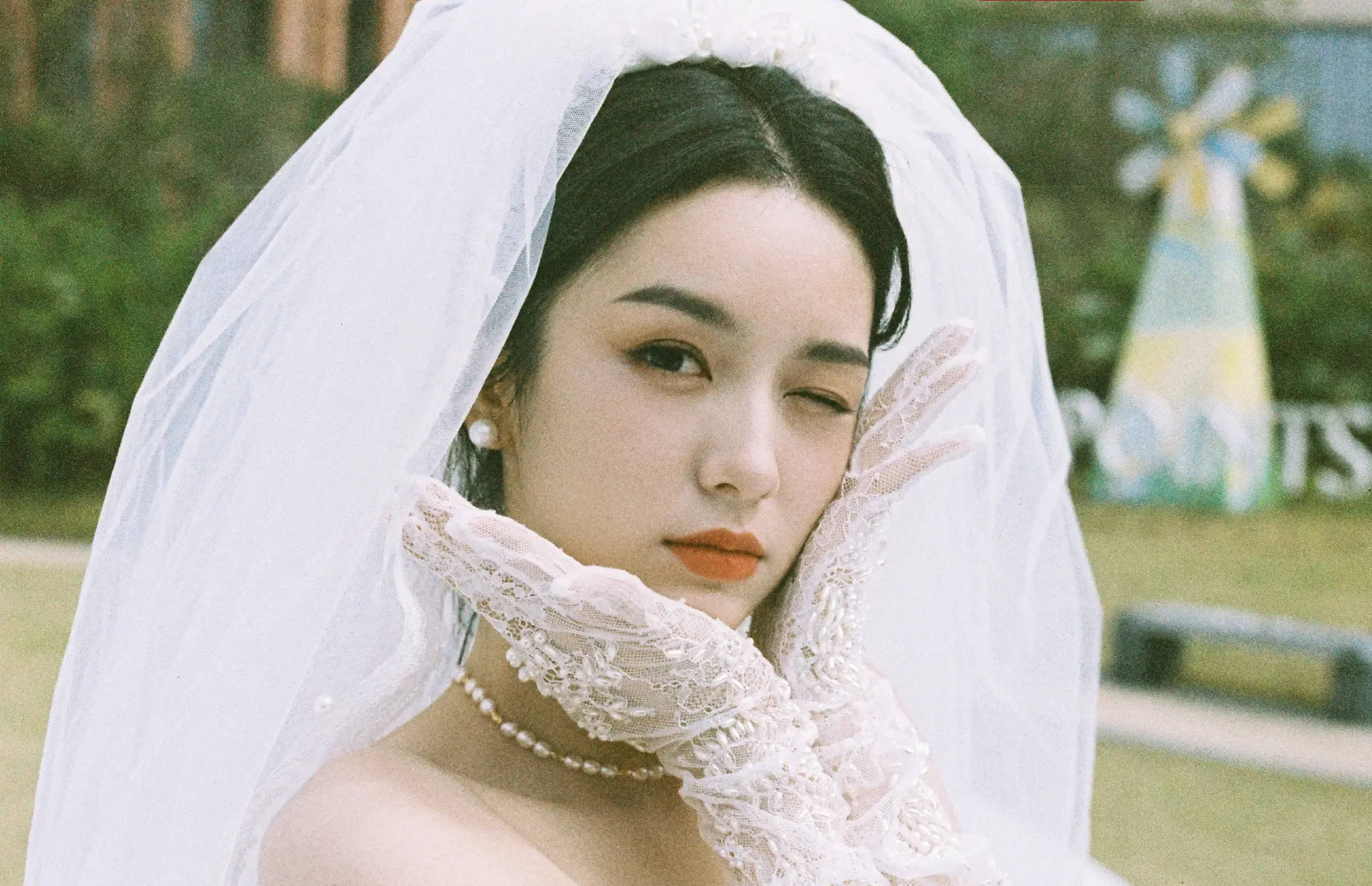 周也对着镜头wink,十分俏皮。