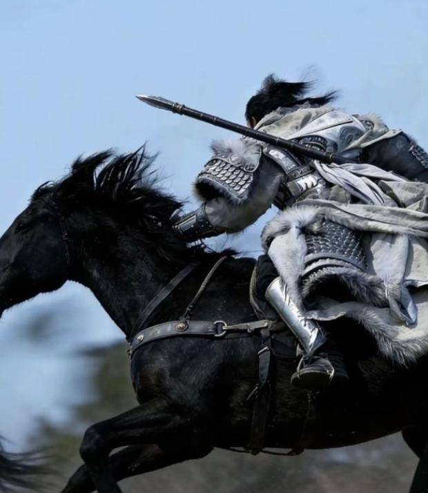 何润东手持方天画戟策马冲锋的场面充满原始力量感,赤兔马上的桀骜眼神与凌厉马战动作,
