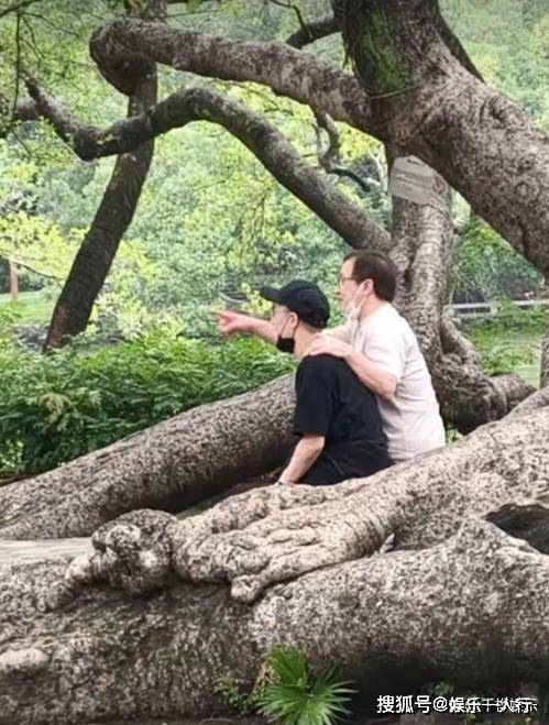 最戳人的一幕发生在苏东坡祠。逛累了,父子俩找了一棵大树根坐下休息。成龙很自然地抬起左手,搭在儿子的右肩上,右手指着远处的风景,侧过头跟房祖名说着什么。房祖名微微倾身听着,帽檐下的表情看不太清,但那种放松和接纳的姿态,是装不出来的。有网友翻出了房祖名小时候骑在爸爸脖子上的老照片,和眼前这个画面一对比,让人瞬间恍惚。时间好像绕了一个大圈,又把这对父子送回了彼此身边,只是当年的小不点,如今已是个能并肩而坐的中年男人了。