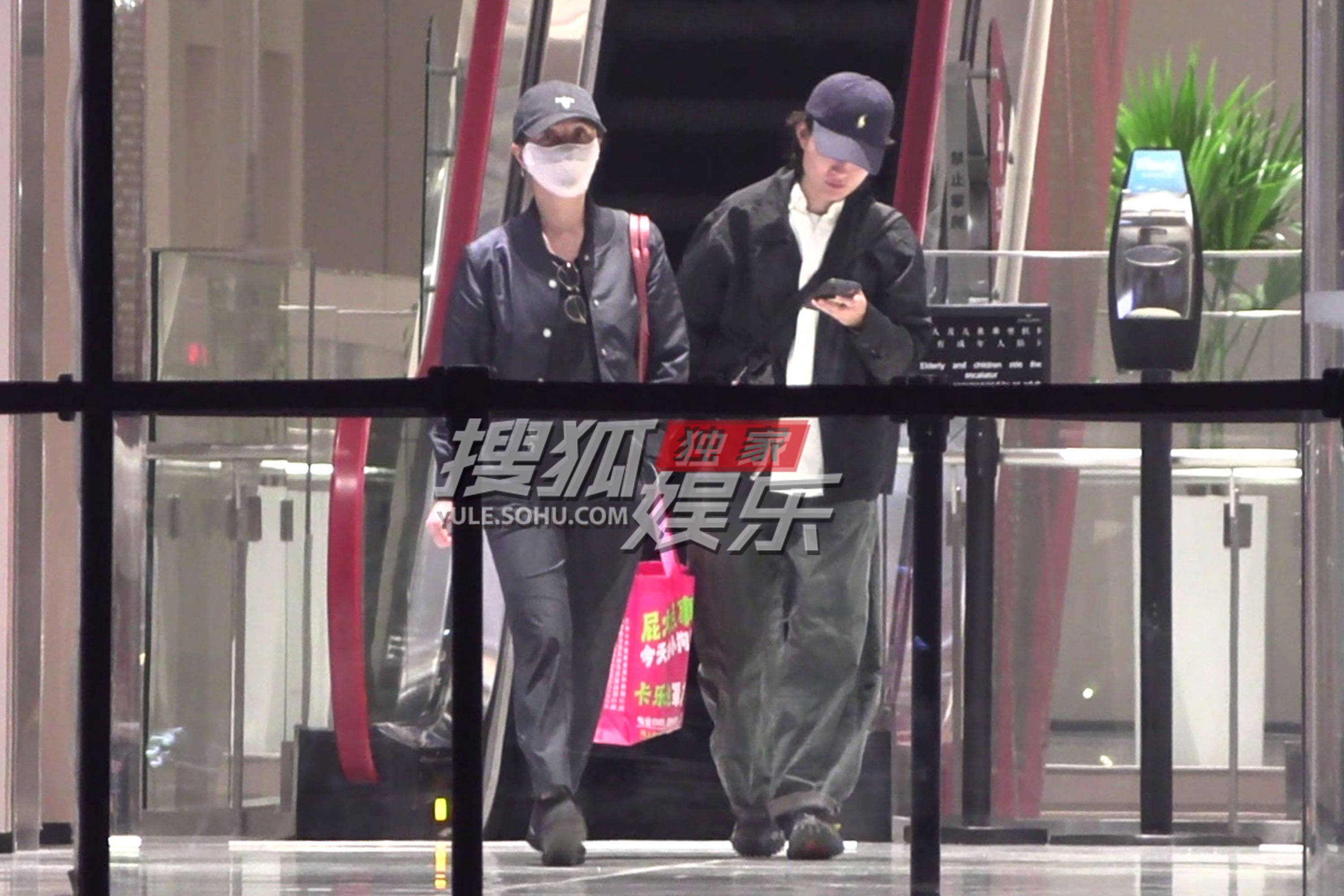 周迅单肩背着一只腋下包,身板笔直,步伐稳健。