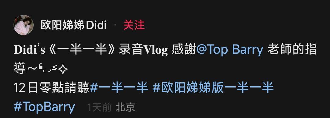 惊喜联动!欧阳娣娣晒出最新vlog!和Top Barry一起录制《一半一半》!
