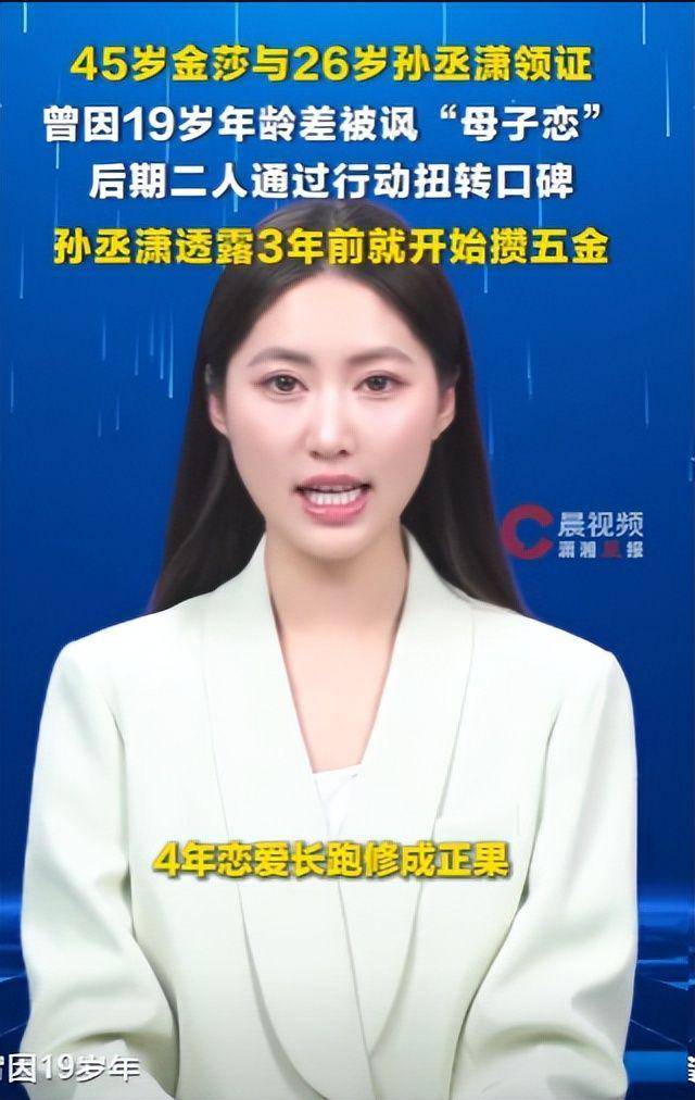 前言,4月9日,45岁的女明星金莎在微博上晒出了一组婚纱照,配文简洁却直击人心:介绍一下我的老公,她身边的男子正是小她19岁的孙丞潇。