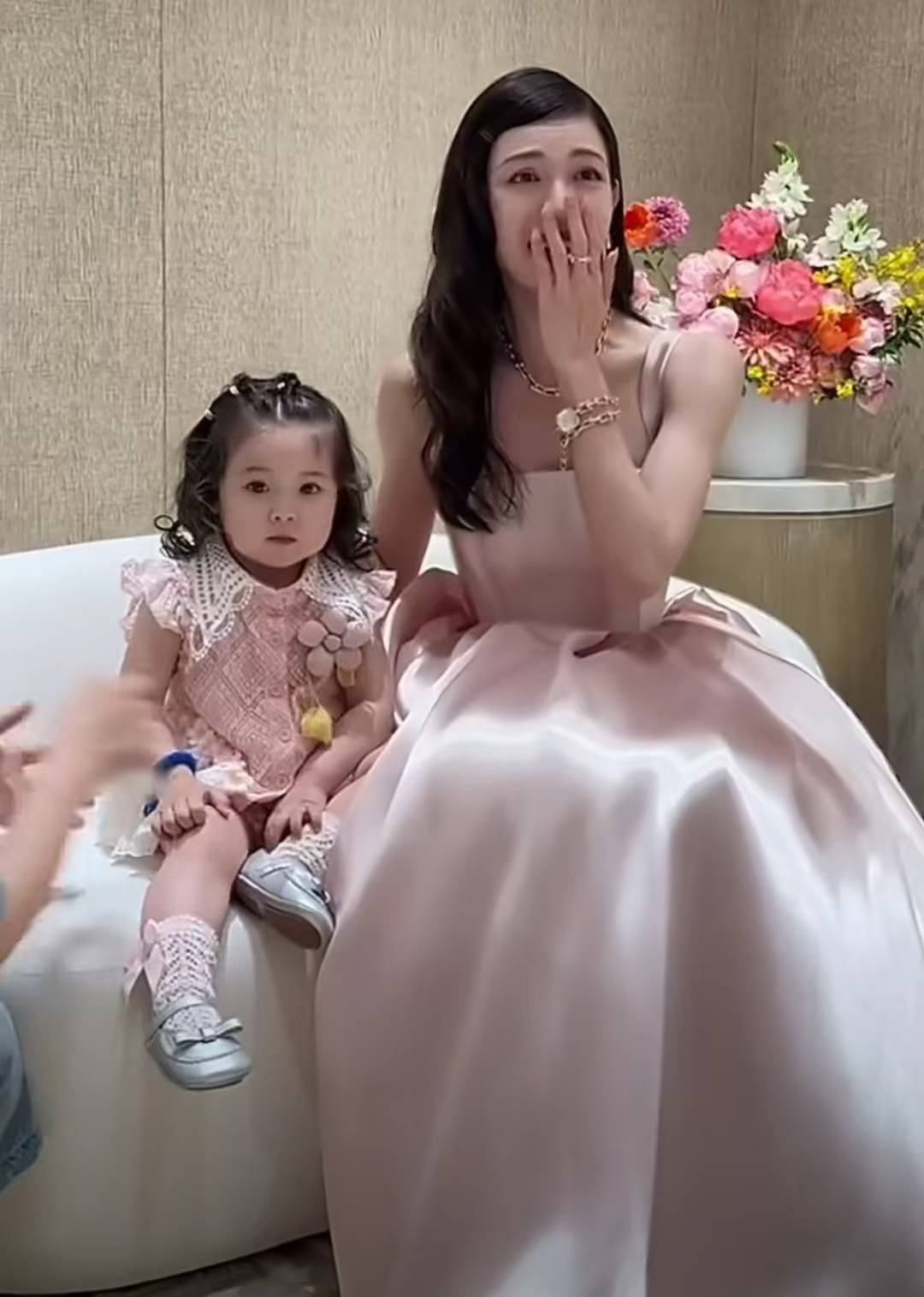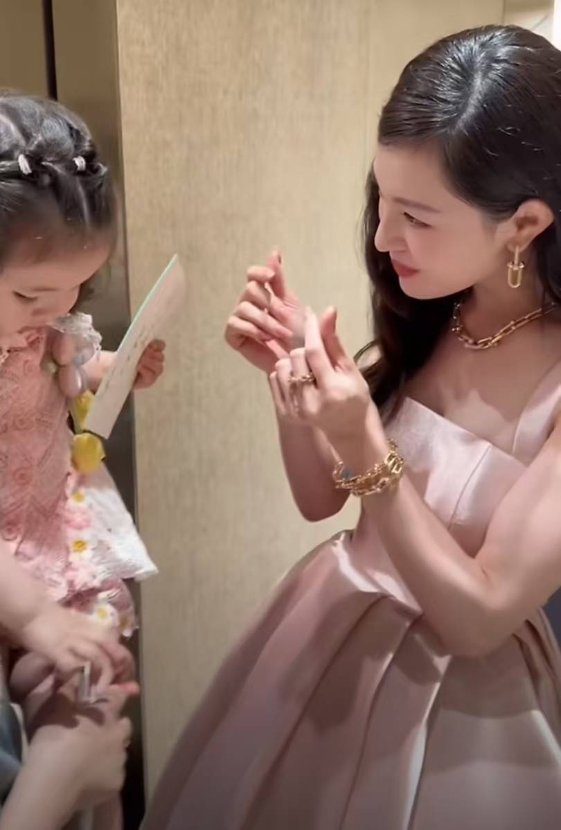 钟楚曦和小朋友同框,温柔捂嘴笑。