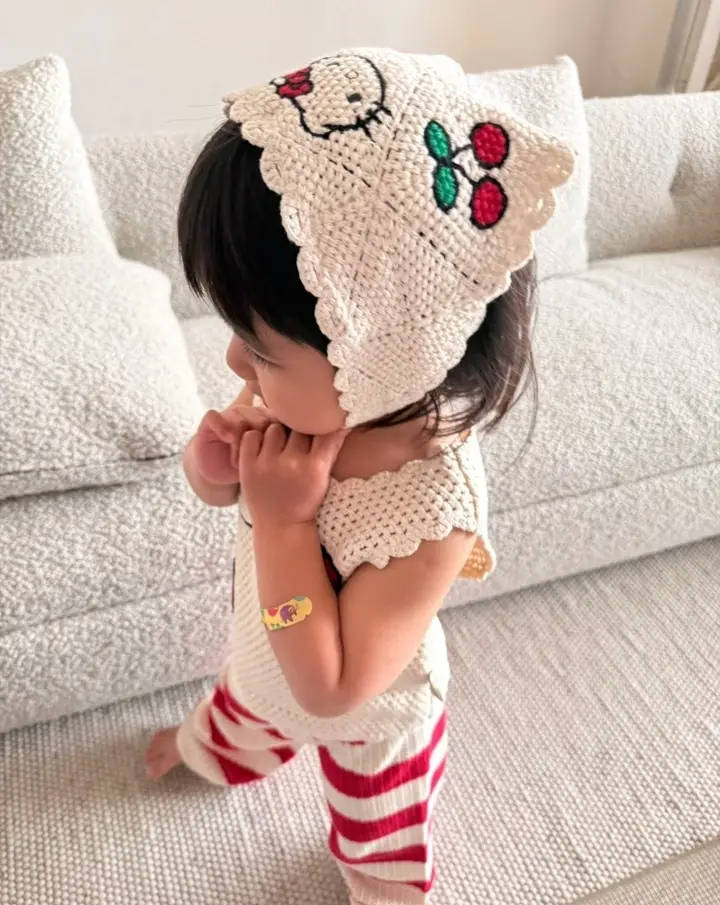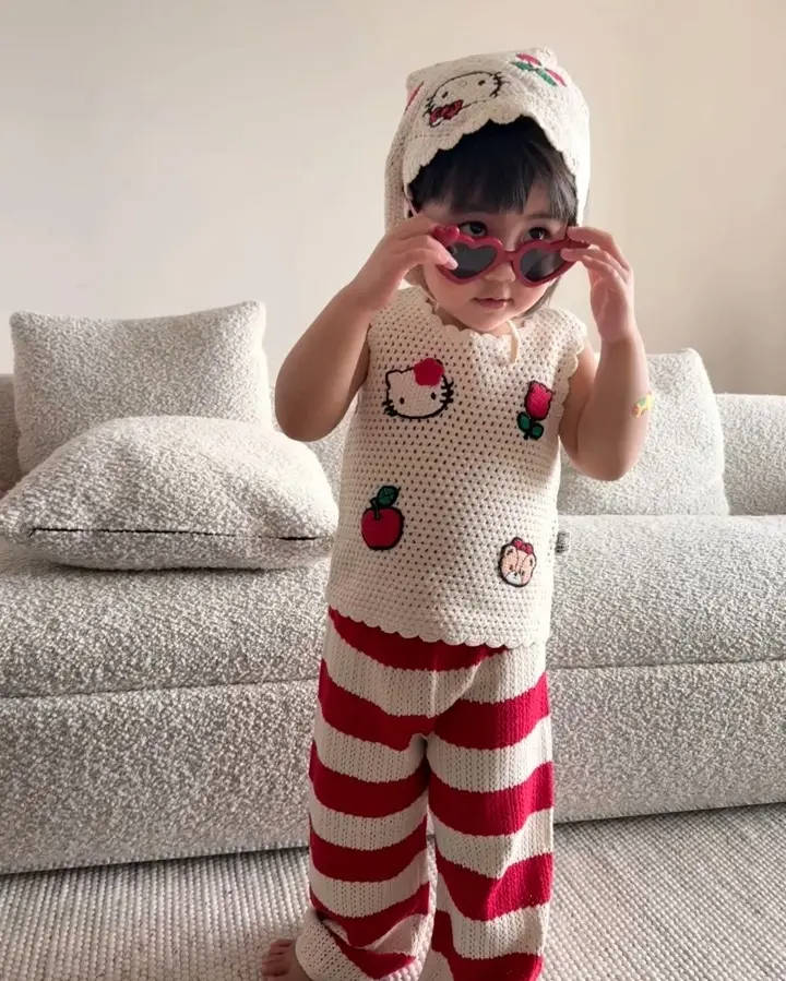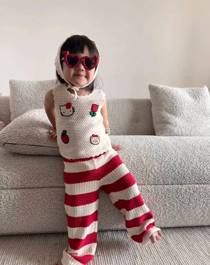 明道女儿一身可爱针织套装,甜酷感拉满。