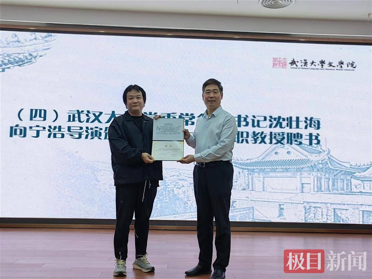 当日,武汉大学党委常务副书记沈壮海,向宁浩导演颁发了武汉大学兼职教授聘书。武大文学院党委书记王三礼,向宁浩导演颁发了武汉大学文学院中文创意写作行业导师聘书。