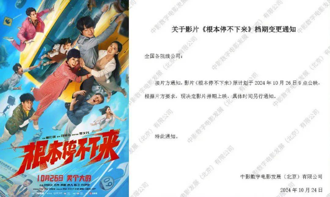 林珍钊执导,包贝尔监制及主演的喜剧电影《根本停不下来》宣布择期上映(原定10月26日),新档期待定。该片主演还有王智 、蔡明 、唐人、陈卫 、苏伊可等,讲述一场奇遇将性格迥异的一家人紧密相连,他们展开了一场又一场自救行动。